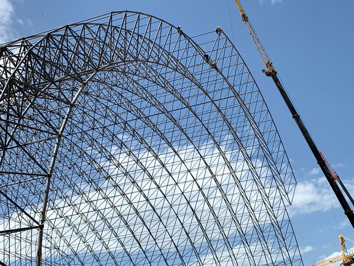 (2)网架加工前应对现场尺寸进行复测,确认无误后方可进行加工、安装;网架制作、运输、安装应遵守《空间网格结构技术规程》JGJ7-2010、《钢网架邓州螺栓球节点》JG/T 10-2009、《钢网架邓州螺栓球节点用高强度螺栓》 GB/T 16939-2016、《邓州钢结构邓州工程邓州施工规范》 GB50755-2012、《邓州钢结构邓州工程邓州施工质量验收标准》 GB50205-2020。